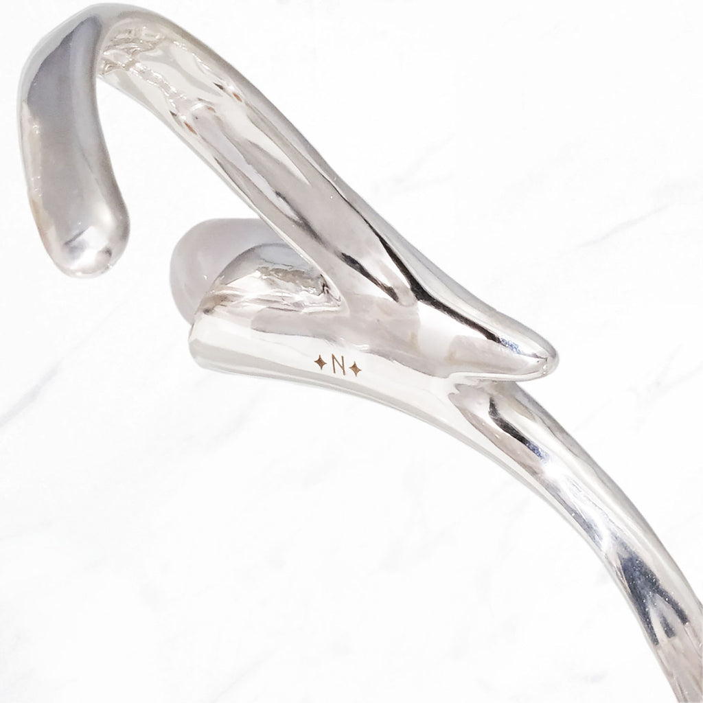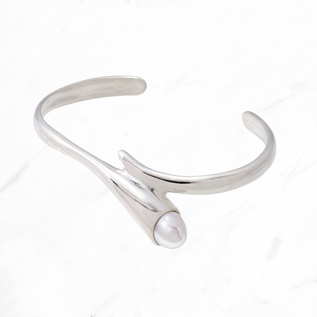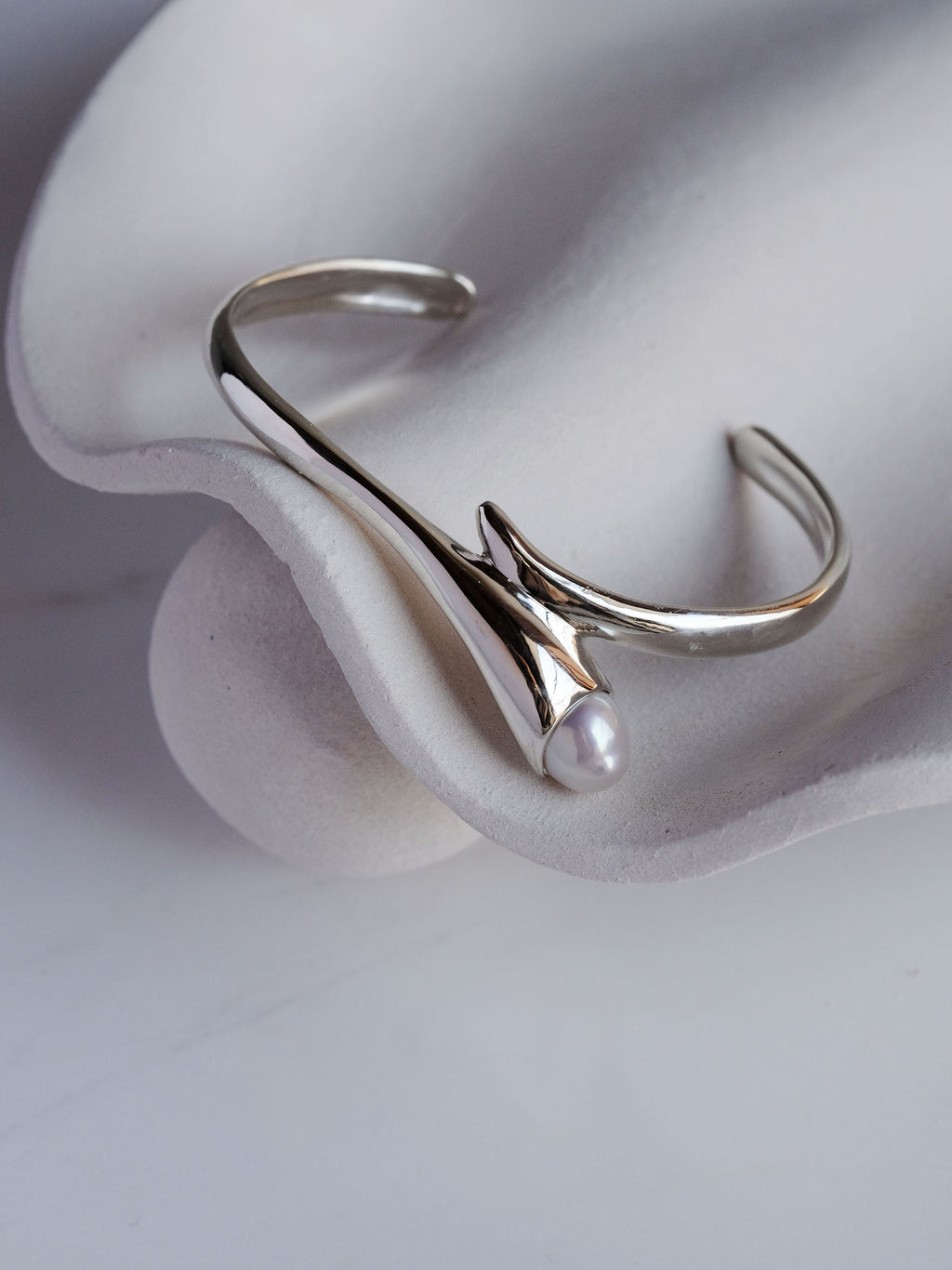 Inspired by the graceful curves of the calla flower, this bangle traces the fluid lines of leaves and stems, naturally resting around the wrist.